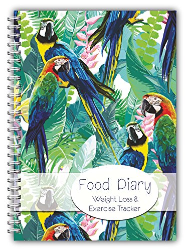 Diario per annotare la propria alimentazione, diete, programmi di dimagrimento da soli o in gruppo, con molto spazio per aggiungere i propri testi, motivo pappagalli