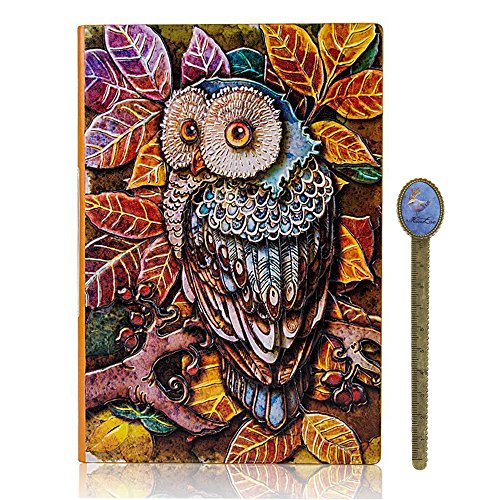 Diario da viaggio foderato, formato A5, con copertina rigida in finta pelle, gufo stampato in bronzo Misura unica Colored Owl