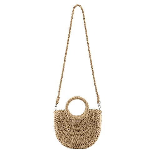 CHIC DIARY Borsa a tracolla da donna in paglia a semicerchio, piccola borsa estiva da spiaggia, borsa a tracolla intrecciata, marrone, taglia unica