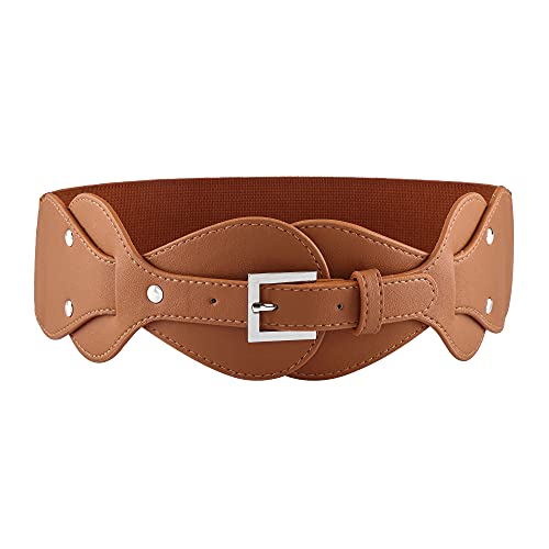CHIC DIARY Cintura elastica da donna, ampia cintura in vita, elegante e alla moda, elasticizzata, cintura per vestito, cintura regolabile, marrone, Taglia unica