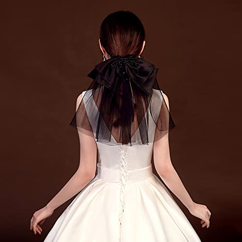 CHIC DIARY Velo nero con fiocco in tulle corto da sposa con fermaglio, accessori per Halloween, Carnevale, abito da sposa, modello 1, Taglia unica