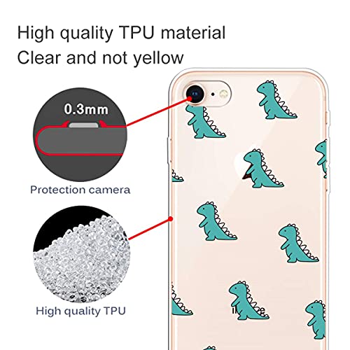DiaryTown per Cover iPhone 8 / iPhone 7 / iPhone SE 2020, Custodia Cover Silicone Trasparente Disegni Ultra Slim TPU Morbido Antiurto Cartoon Bumper Case Protettiva per iPhone SE 2022 5G - Dinosauro A