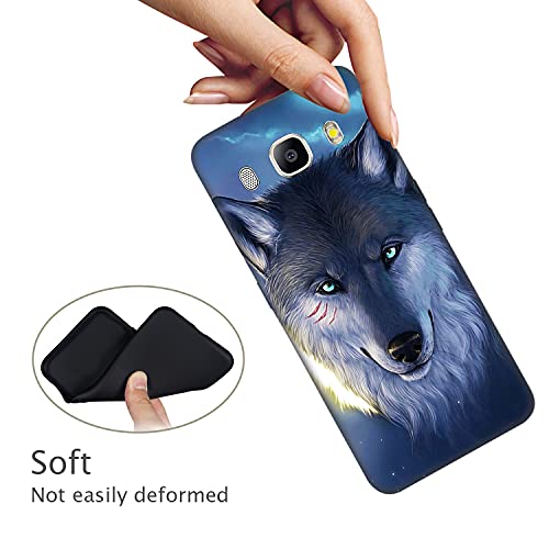 DiaryTown 2 Cover per Samsung J7 2016 Custodie TPU Silicone Morbida con Bello Animale Disegno Motivi Antiurto Protettivo Nero Cover Gomma Ultra Sottile Morbido Cover per Galaxy J710 - Lupo/Tigre