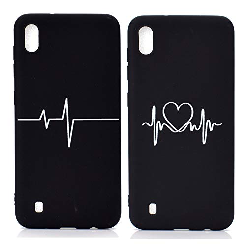 DiaryTown 2 Cover per Samsung Galaxy A10 2019 Silicone Morbida, Custodia Samsung A10 Nero con Disegni Case Antiurto Protettivo TPU Sottile Accessori Telefoni, Love Heartbeat