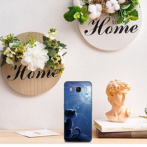 DiaryTown Cover per Samsung Galaxy J5 2016 Silicone Morbida, Nero Cover Samsung J5 2016 Custodia con Disegni Animale Case Sottile TPU Antiurto Bumper Cellulare Protettiva Cover, Gatto Luna