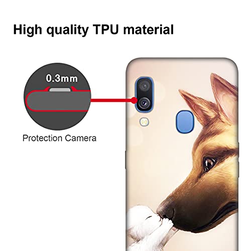 DiaryTown Cover per Samsung Galaxy A40 2019 Silicone Morbida, Nero Cover Samsung A40 2019 Custodia con Disegni Animale Case Sottile TPU Antiurto Bumper Cellulare Protettiva Cover, Bacio Cane