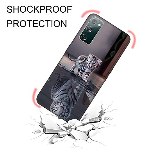 DiaryTown 2 Cover per Samsung S20 FE 5G / 4G Case, TPU Silicone Morbida Custodie Galaxy S20 FE 2022 Nero con Bello Disegno Motivi Antiurto Protettivo Cover Gomma Ultra Sottile - Gatto & Tigre