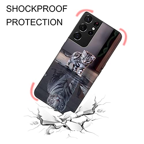 DiaryTown 2 Cover per Samsung S21 Ultra 5G Case, TPU Silicone Morbida Custodie Galaxy S21 Ultra 5G Nero con Bello Disegno Motivi Antiurto Protettivo Cover Gomma Ultra Sottile - Gatto & Tigre