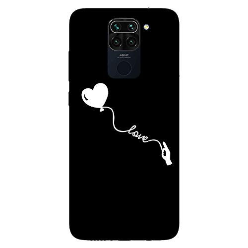 DiaryTown 2 Pack Cover per Xiaomi Redmi Note 9 Silicone Morbida, Custodia Redmi Note 9 Nero con Disegni Case Antiurto Protettivo TPU Accessori Telefoni, Palloncino Amore