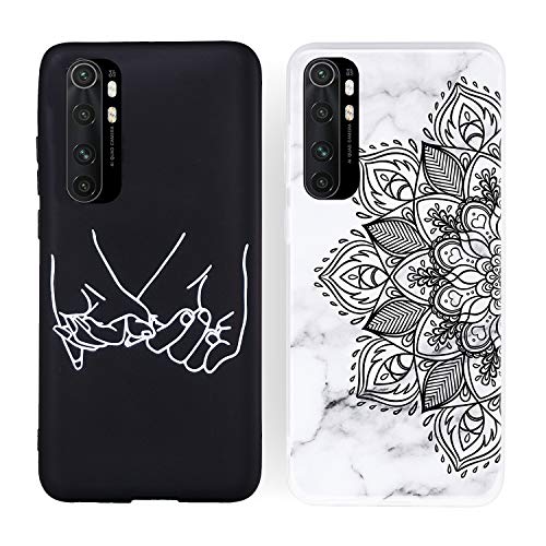 DiaryTown 2 Cover per Xiaomi Mi Note 10 Lite Silicone Morbida, Custodia Xiaomi Mi Note 10 Lite Nero Bianca con Disegni Case Antiurto Protettivo TPU Accessori Telefoni, Mandala
