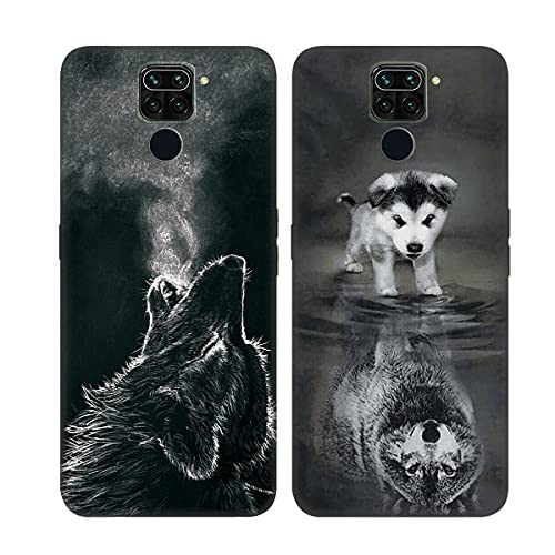 DiaryTown 2 Cover per Xiaomi Note 9 Case, TPU Silicone Morbida Custodie Redmi Note 9 Nero con Bello Disegno Motivi Antiurto Protettivo Cover Gomma Ultra Sottile - Cane & Lupo