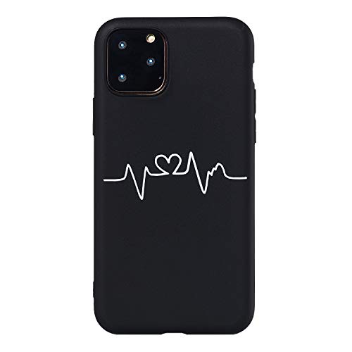 DiaryTown 2 Pezzi Cover per iPhone 11 PRO 5.8 Silicone Morbida Cover Bianco Nero Custodia iPhone 11 PRO Bella Disegni Case Antiurto Protettivo TPU Sottile Accessori Telefoni, Battito Cardiaco