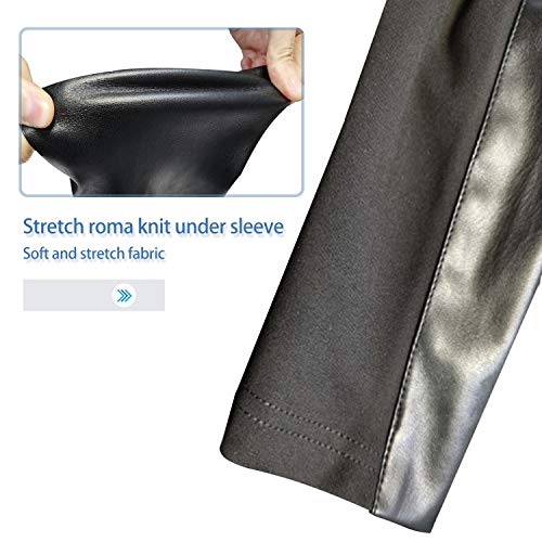 【Design manica elasticizzata】 La giacca di pelle è in maglia roma elasticizzata sotto la manica. La manica lunga del nostro cappotto in ecopelle non è solo sottile ma anche molto flessibile. Abbiamo unito e utilizzato tessuti elastici in cui le maniche sono invisibili, il che consente alle braccia di avere più spazio per i movimenti e non saranno strette.