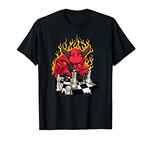 Diavolo di fiamma con scacchiera e pezzi di scacchi Maglietta