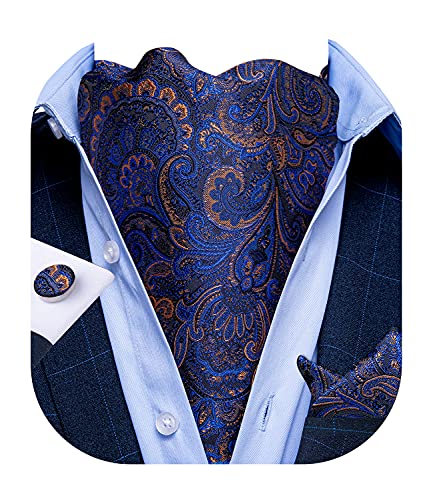 DiBanGu Cravat Mens Cravat Self Tie Jacquard Tessuto Paisley Ascot Tie e Pocket Gemelli Quadrati Set Formale Casual 02 blu. Taglia unica