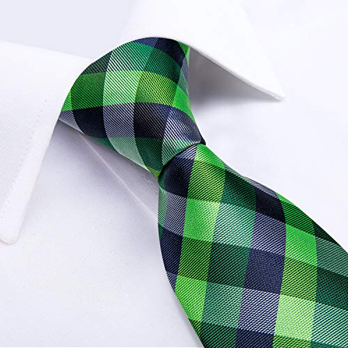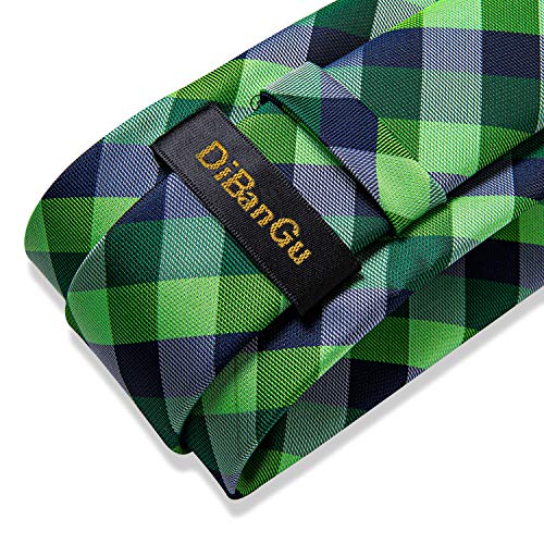DiBanGu Cravatta da uomo tinta unita in seta intrecciata a righe plaid cravatta fazzoletto gemello fermacravatta set formale affari matrimonio, Plaid verde., M
