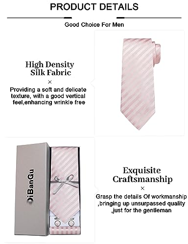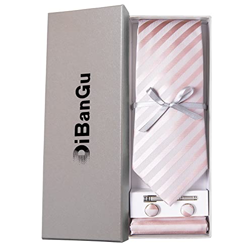 DiBanGu Cravatta da uomo in seta tinta unita a righe plaid cravatta fazzoletto gemello cravatta clip set formale di nozze di affari, 05 rosa., Taglia unica