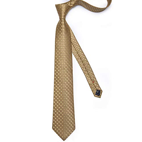 DiBanGu Cravatta da uomo in seta tinta unita cravatta e tasca quadrata da matrimonio gemelli Set formale, Oro, Taglia unica