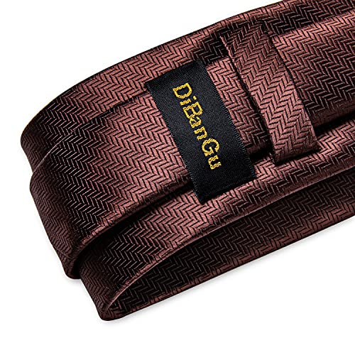 DiBanGu Cravatta da uomo in seta tinta unita cravatta e tasca quadrata da matrimonio gemelli Set formale, Caffè solido, Taglia unica