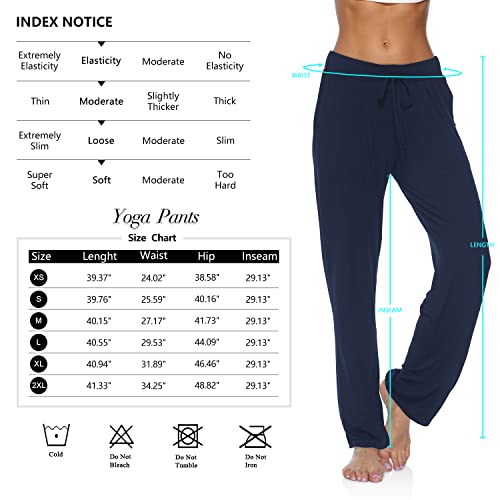 DIBAOLONG Pantaloni da yoga da donna, gamba larga, comodi e comodi con coulisse e lacci, Navy, S