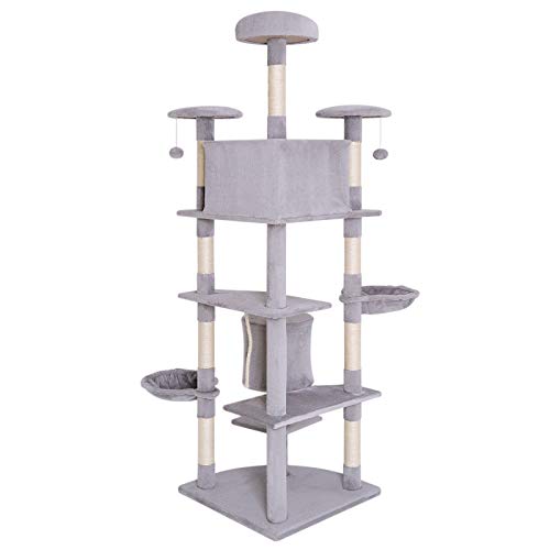 Dibea Albero Tiragraffi Giocattolo Gatti, Grigio Chiaro, 200 cm