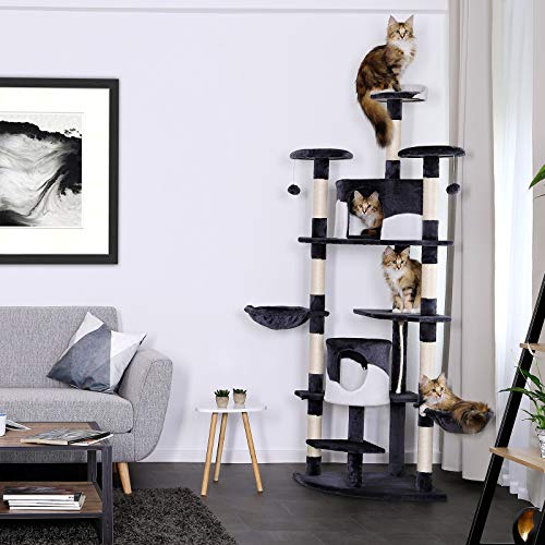 Dibea Albero Tiragraffi Giocattolo Gatti, Grigio/Bianco, 200 cm