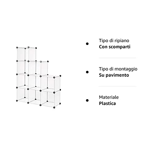 Dibea - Scarpiera modulare in plastica, con 9 Scomparti, 30 x 30 cm, Trasparente