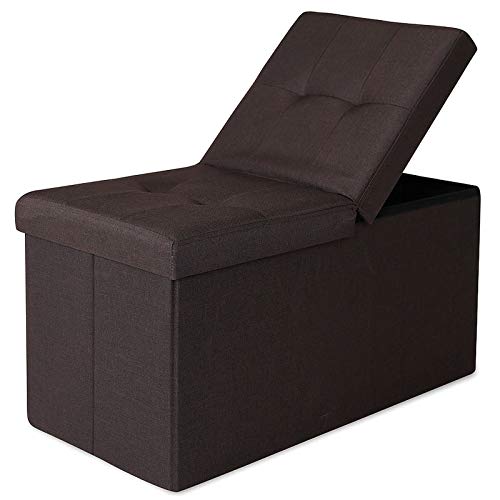 Dibea Sgabello cassapanca pieghevole Panca con Contenitore con Coperchio a Cerniera 76x38x38 cm, in Lino Marrone