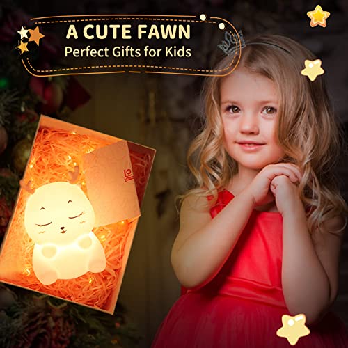 Diboniur Luce Notturna Bambini, Lucina Notte Ricaricabile USB, 7 Colori LED Lampada Silicone Comodino Tocco per Cameretta Regalo Neonato (Cervo)