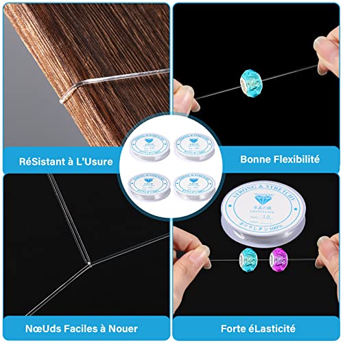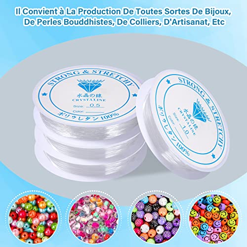 Diboniur 4 Pezzi Filo Elastico per Braccialetti Trasparente, 0.5mm 1mm Filo Perline per Collane Cordoncino Resistente per Bracciali, Collane, Creazione di Gioielli fai-da-te