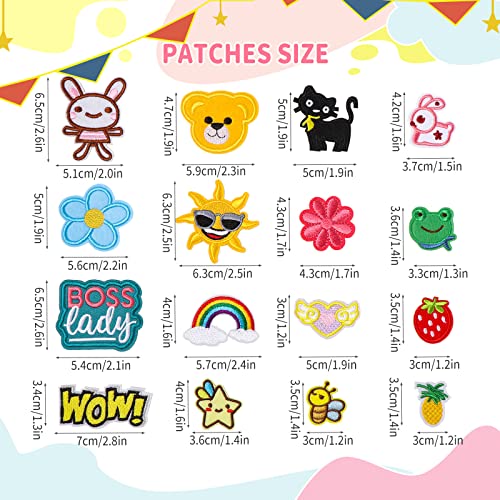 Diboniur Toppe Termoadesive Bambini Adulti, 60 Pezzi Ricamata Toppa Termoadesiva per Tessuti, Patch Termoadesive per Riparare Buchi e DIY Giacche, Pantaloni, Camicie, Cartella