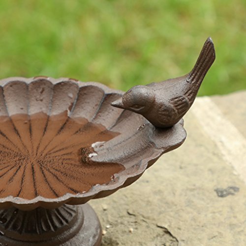 Dibor Bagno per Uccelli in ghisa Marrone Antico (W643) - Modo Ideale per attirare la Natura nella Vostra casa! - 20 x 16,5 x 14 cm