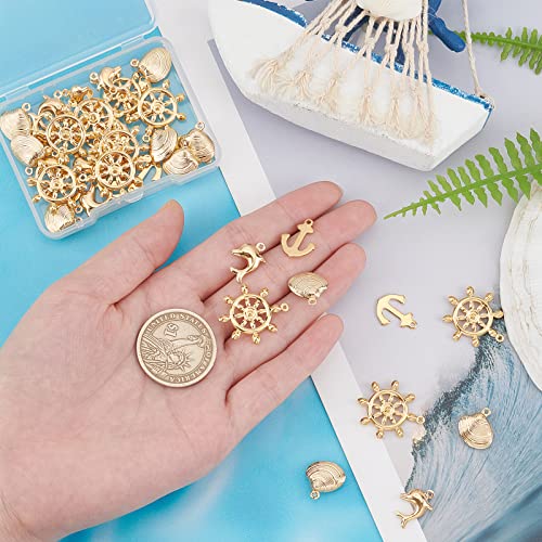 DICOSMETIC 40Pcs 4 Ciondoli Conchiglia Dorata In Acciaio Inossidabile Ciondoli Delfino Ciondoli Timone Ciondoli Ancora Ciondoli Nautici Ciondoli Oceano per Bracciale Collana Orecchini Fare