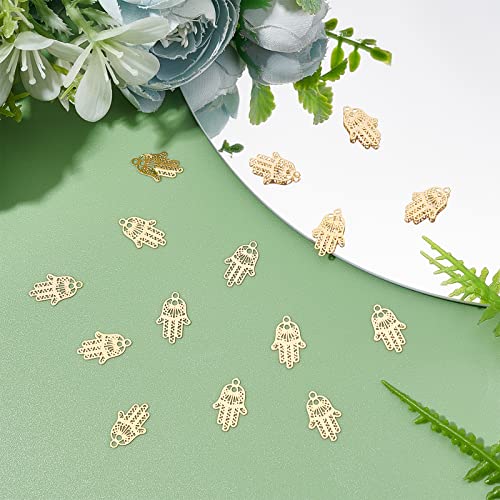 DICOSMETIC 60Pcs Ciondolo Mano Hamsa In Acciaio Inossidabile Filigrana Connettore Pendenti e Ciondoli Fatima Mano Oro Colore Filigrana Pendenti e Ciondoli per Creazione di Gioielli, Foro: 1mm