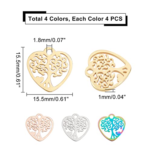 DICOSMETIC 16 pz 4 Colori Acciaio Inossidabile del Cuore Albero Pendenti e Ciondoli Albero della Vita Pendenti Dell'Albero Genealogico Pendenti con Piante Cavi per La Creazione di Gioielli,Foro:1.8mm