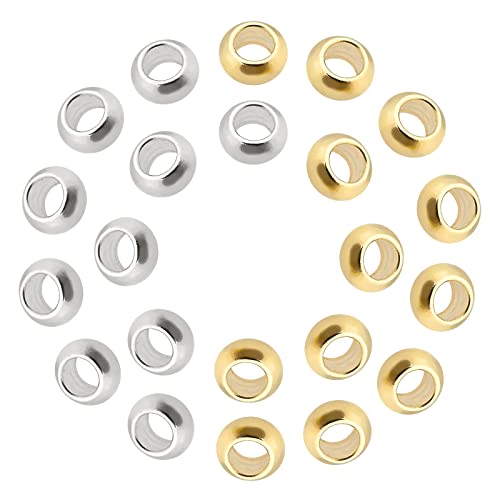 DICOSMETIC 1000 pz 2 Colori Tubo Perline A Crimpare 304 Barile di Acciaio Inossidabile Perline Allentate Perline Europee Stopper Perline Distanziatrici per Creazione di Gioielli,Foro:0.5-1mm