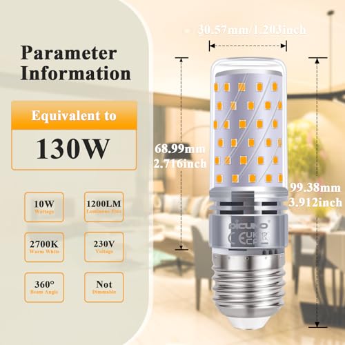⭐【Basso consumo】: Risparmio del 92% sui costi di energia ed elettricità. DiCUNO e27 mais lampadina led 10W emette 1200LM luce, bianco caldo 2700K che può sostituire perfettamente le lampade alogene 130W e fornire una scena luminosa ed energica.