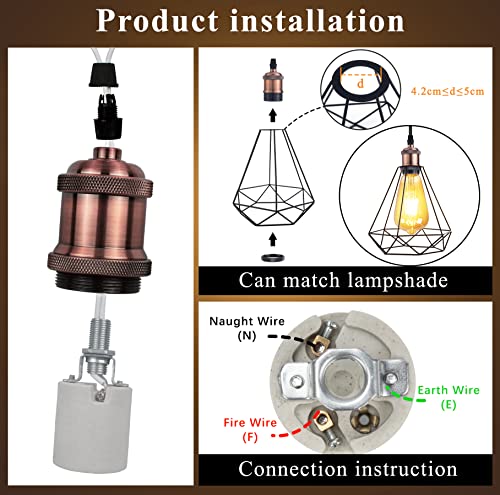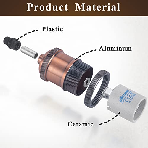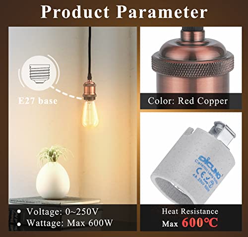 ✅Descrizione: DiCUNO E27 vintage portalampada, antico e industriale, compatibile con lampadine E27 con base media, in particolare lampadine Edison vintage, adatte per progetti di illuminazione decorativa a sospensione.(Pacchetto: Red Copper × 6)