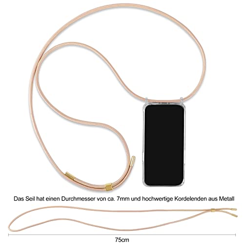 DiDaDi [5 in 1] Cover Trasparente con Cordino per iPhone 12 Pro Max, Custodia con Regolabile Laccio Tracolla,con 2 Pezzi Vetro Temperato e Pellicola Fotocamera protettiva,Case con Collana,Oro