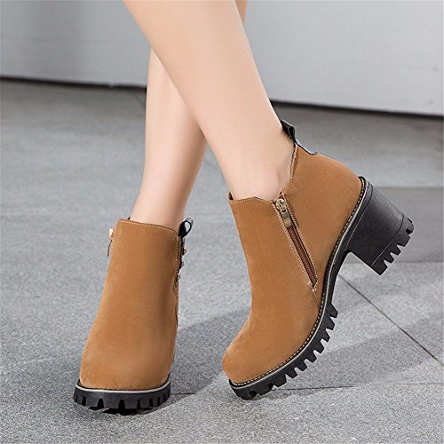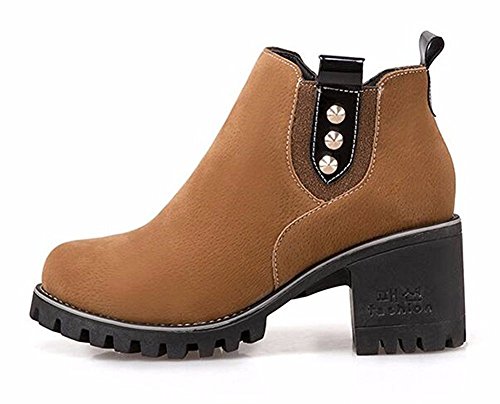 DIDIDD Scarpe da donna 'S Boots tacco Head Rivetti ribattini Low Rivets Autumn Winter Shoes,38 Eu,Marrone