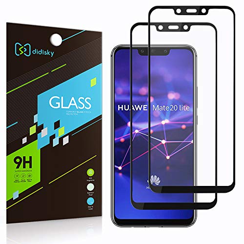 Didisky Vetro Temperato per Huawei Mate 20 Lite, 2 Pezzi Pellicola Protettiva Copre Assolutamente Lo Schermo, Compatibile con la Cover, Trasparente, (Nero)