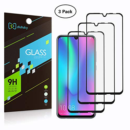 Didisky Vetro Temperato per Huawei P Smart 2019/Honor 10 Lite, [ 3 Pezzi ] Pellicola Protettiva Copre Assolutamente Lo Schermo, Compatibile con la Cover, Trasparente, (Nero)