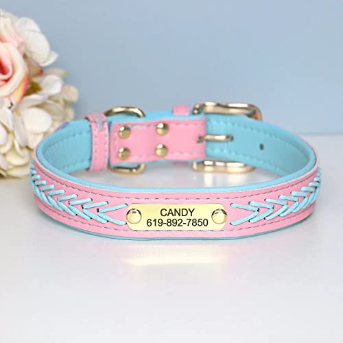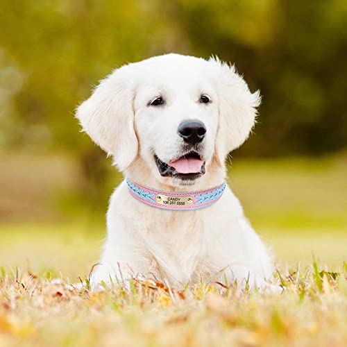 Didog, collare in pelle personalizzabile con targhetta in ottone incisa - Collare imbottito in pelle intrecciata - Collare regolabile per cani e gatti di taglia piccola, media, grande, blu, XL