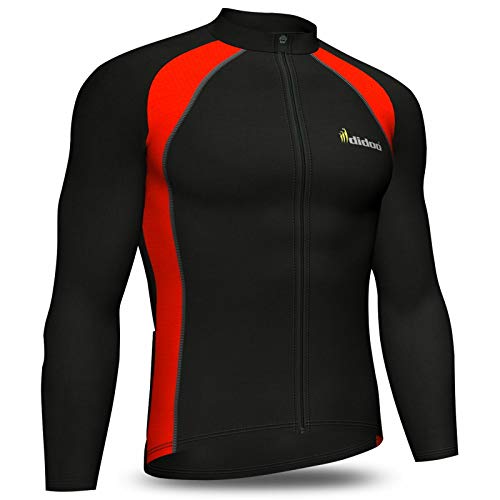 Didoo Maglia Ciclismo Uomo, Termico Manica Lunga, Cerniera Intera, Pile, Traspirante, Leggero, Alta visibilità, Indumento Fresco Maglia MTB Mountain Bici Corsa Abbigliamento Sportivo