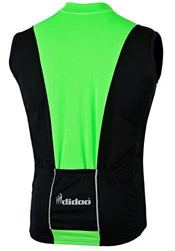 Didoo Maniche Maglia Ciclismo Uomo Ciclismo Canotta con Zip Intera Tasche Posteriori Traspirante Riflettente Corsa/MTB Giacca per Uomo Estate 2019 - Verde, L