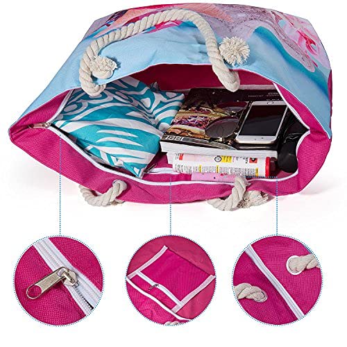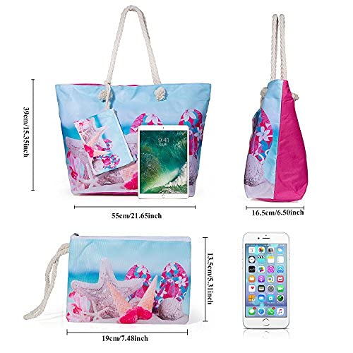 Diealles Borsa da Spiaggia in Tela, Borsa da Spiaggia Grande con Cerniera per Donna e Ragazza (Style 4)