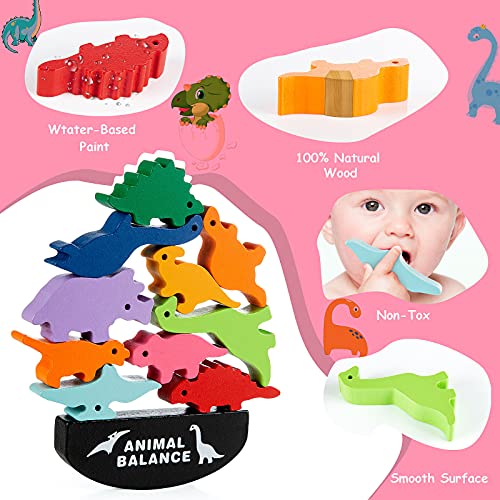 Diealles Shine Dinosauro Giochi Equilibrio per Bambini, 10PCS Gioco Bilanciamento Legno, Giochi da Impilare Legno per Regalo Bambini 3 4 5 6 Anni