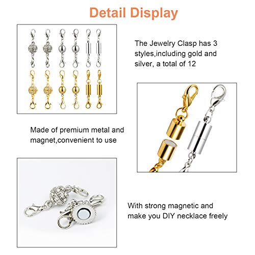 Diealles Shine 12 Pezzi Magnetici Catenacci Chiusure di Aragosta Magnetica con Custodia per Gioielli Collana Bracciale Portachiavi Fai da Te (Oro e Argento)
