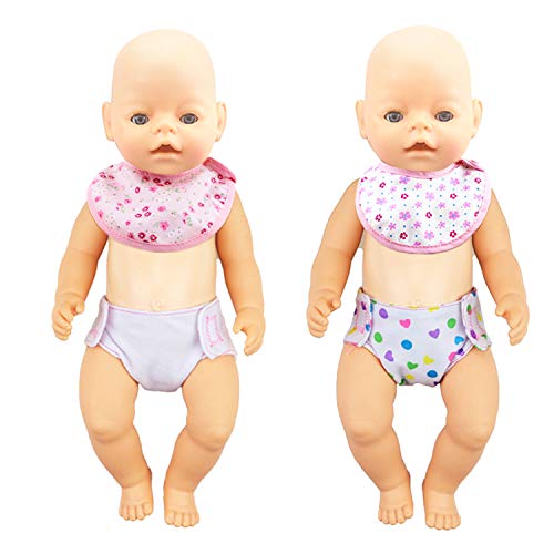 Diealles Shine 4 Pezzi Pannolini per Bambole e 2 Pezzi Bavaglini per Bambole, Accessori per 14-16" Bambolotti