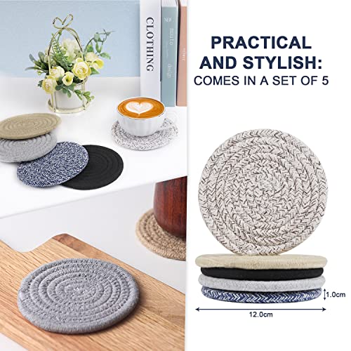 Diealles Shine Sottobicchieri per Vetro, 5 Pezzi Sottobicchieri in Vetro, 5 Colori Rotondi Sottobicchieri in Cotone Intrecciato a Mano, Assorbenti Sottobicchieri per Bevande Resistenti al Calore
